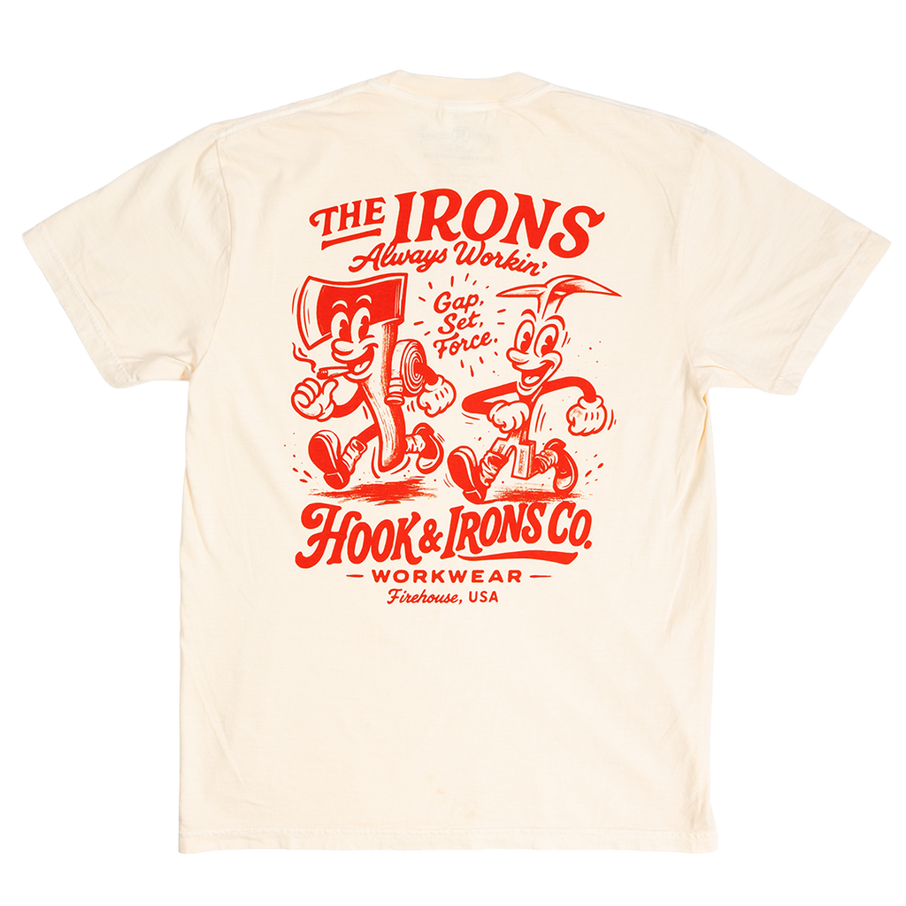 Our annual tribute to the timeless partnership of the axe and halligan. Inspired by vintage American graphics and early cartoon mascots, this shirt celebrates the tools that never rest.