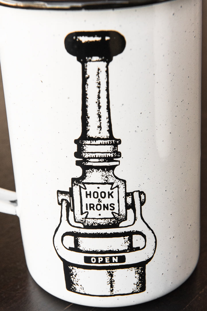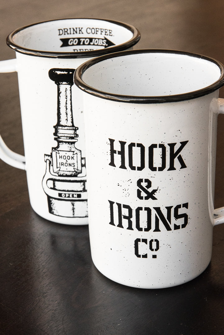 Inspired by the campfire mugs our grandfathers used and that are still in our camping gear today, Hook and Irons has created the toughest coffee mug that money can buy. The 24 ounce Campfire Mug is made of steel, then hand-dipped in enamel, then baked in a kiln. Each mug is slightly different, but rest assured it will be here for generations and will certainly survive Firehouse use.