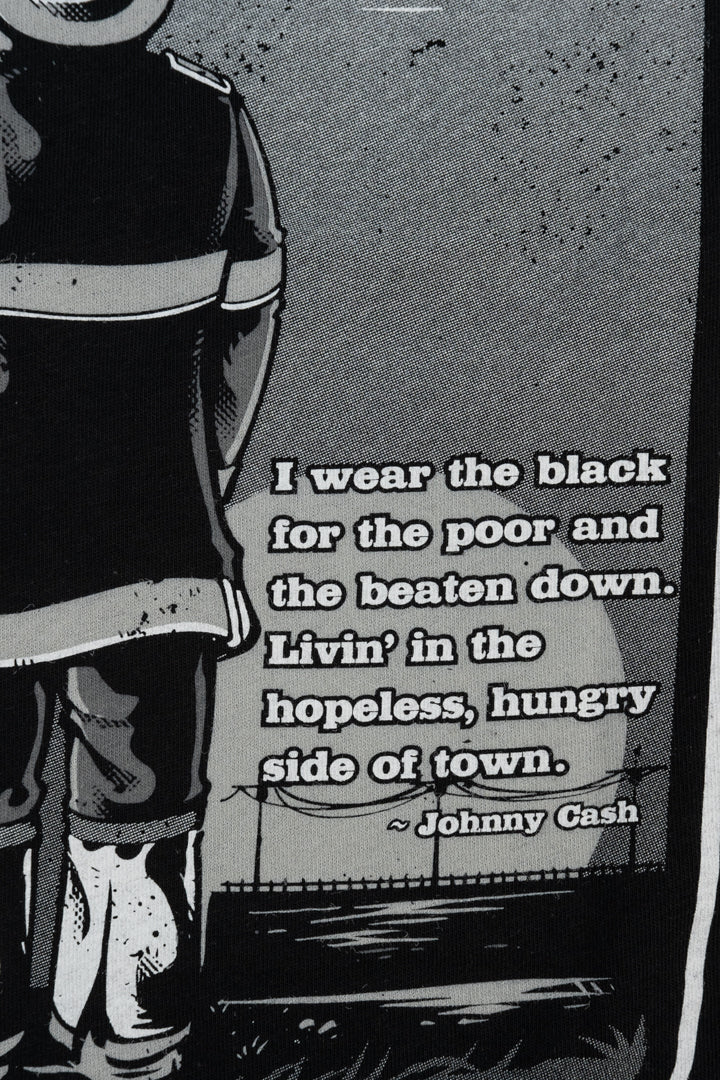 More than his music, there is a reason why Johnny Cash means so much to so many. I personally love his integrity and courage. I love his confidence, but mainly I love the fact that he gave a voice to the unfortunate. Firefighting in its most noble sense does the same. We provide a hand to those who no one else could or would help. This shirt is an homage to 'The Man In Black' and to those who wear the uniform and feel the way Johnny did.