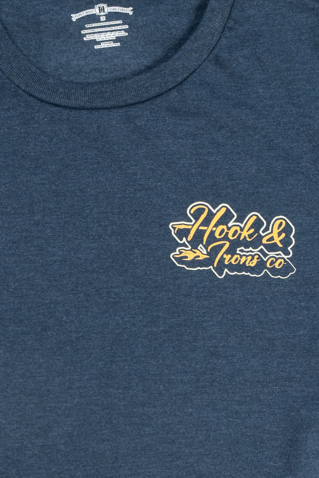 An angel stands over the roof of a brownstone as fire blows out the windows. The imagery guides the eye to the dangers below and you're left to imagine the firefighters who are ascending to the danger. This design was so powerful we decided to release it as a limited edition print. We hope you love it as much as we do
