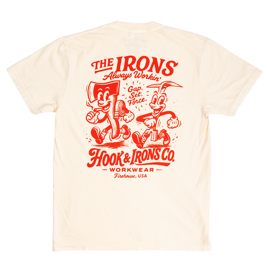 Our annual tribute to the timeless partnership of the axe and halligan. Inspired by vintage American graphics and early cartoon mascots, this shirt celebrates the tools that never rest.