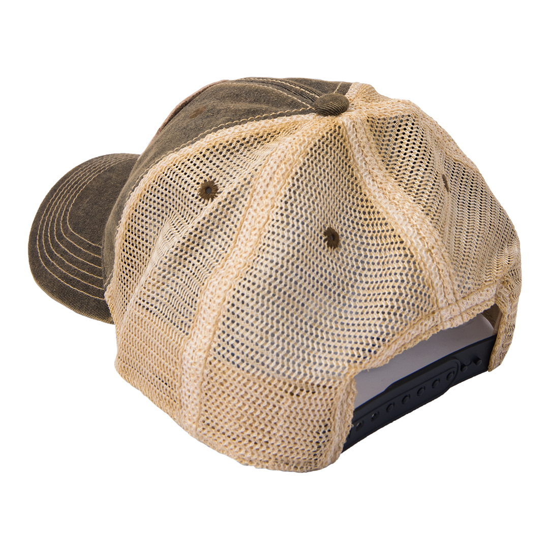 The Vintage Trucker Cap is a weathered black hat with a Hook & Irons logo patch sewn on the front. This cap is low profile and adjustable with natural colored mesh. It looks and fits like that ball cap that was passed down to you by your older brother, minus the sweat stains. Finished with a 'legacy' tag on the side of the cap, this could be the cap that goes with you everywhere.